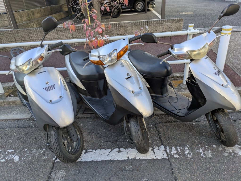 たまたま外装がまともなレッツ2CA1PAが立て続けに仕入れられた事と、今原付スクーターは価値があるとか聞いたのでヤフオクで3台セット出品してみました。