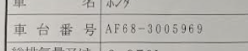 ディオチェスタは書類から車体番号ははっきりわかります。